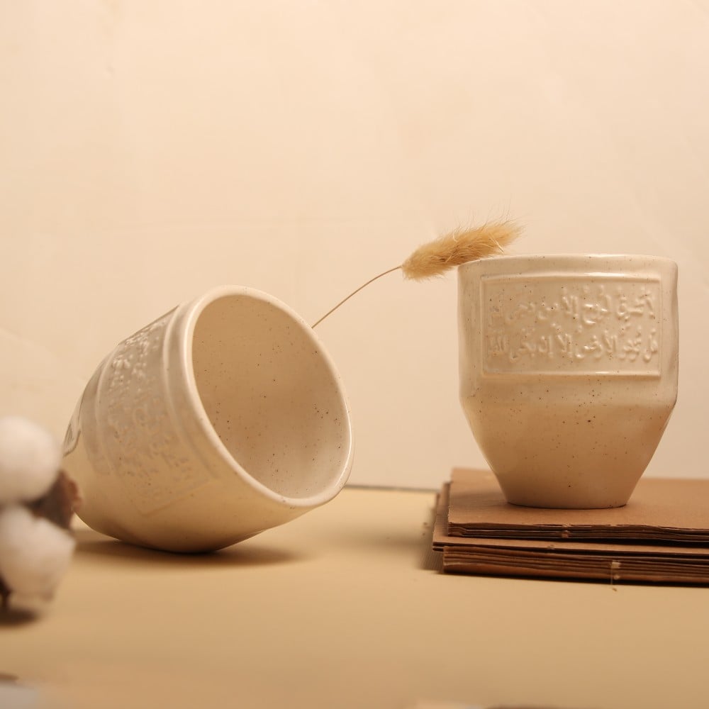 كوب أحمر فاخر مع صحن برسومات مُزهرة