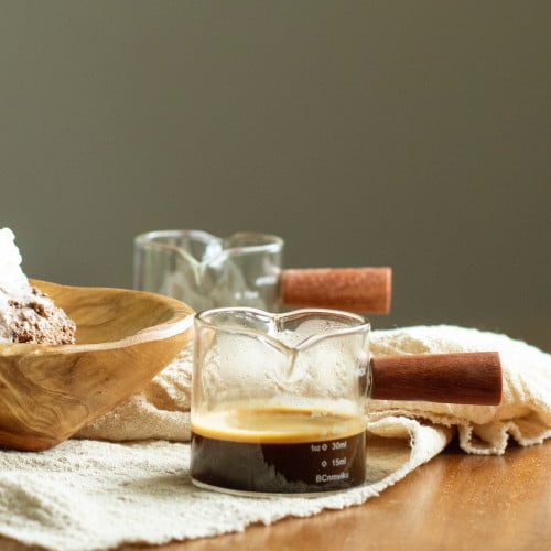 كوب أحمر فاخر مع صحن برسومات مُزهرة