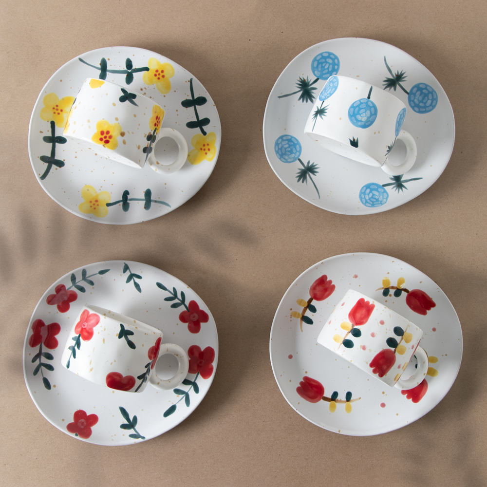 كوب مع صحن ، صناعة يدوية فاخرة برسومات مزهرة